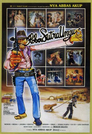 For ones who never heard, dulu ada kelompok mahasiswa seangkatan Warkop yang sama bersinarnya, malah sampai punya beberapa album parodi model Project Pop sekarang, namun dibalut irama orkes rakyat yang cenderung ke dangdut, sebutannya Orkes Moral. Sekilas seperti banyolan, tapi penuh skill, hingga beberapa anggotanya yang masih eksis di musik sampai sekarang, di genre jazz pula. Grup mereka bernama PSP, singkatan dari Pancaran Sinar Petromak dengan maskotnya, Monos yang botak berkumis tebal serta James yang geeky a la Napoleon Dynamite. Judul Koboi Sutra Ungu sendiri diplesetkan dari film film drama Kabut Sutra Ungu. Disini Nya’Abbas Akup memindahkan kritik sosialnya ke set yang memparodikan banyak gaya film western terkenal masa itu dari Django sampai The Man With No Name-nya Eastwood, menampilkan Meriam Bellina yang baru memulai debutnya serta Titik Puspa yang legendaris, and turns out to be one of the most entertaining Indonesian comedy and the smartest Indo-parody ever. Lihat adegan joget kutu-nya. Ultimately funny!